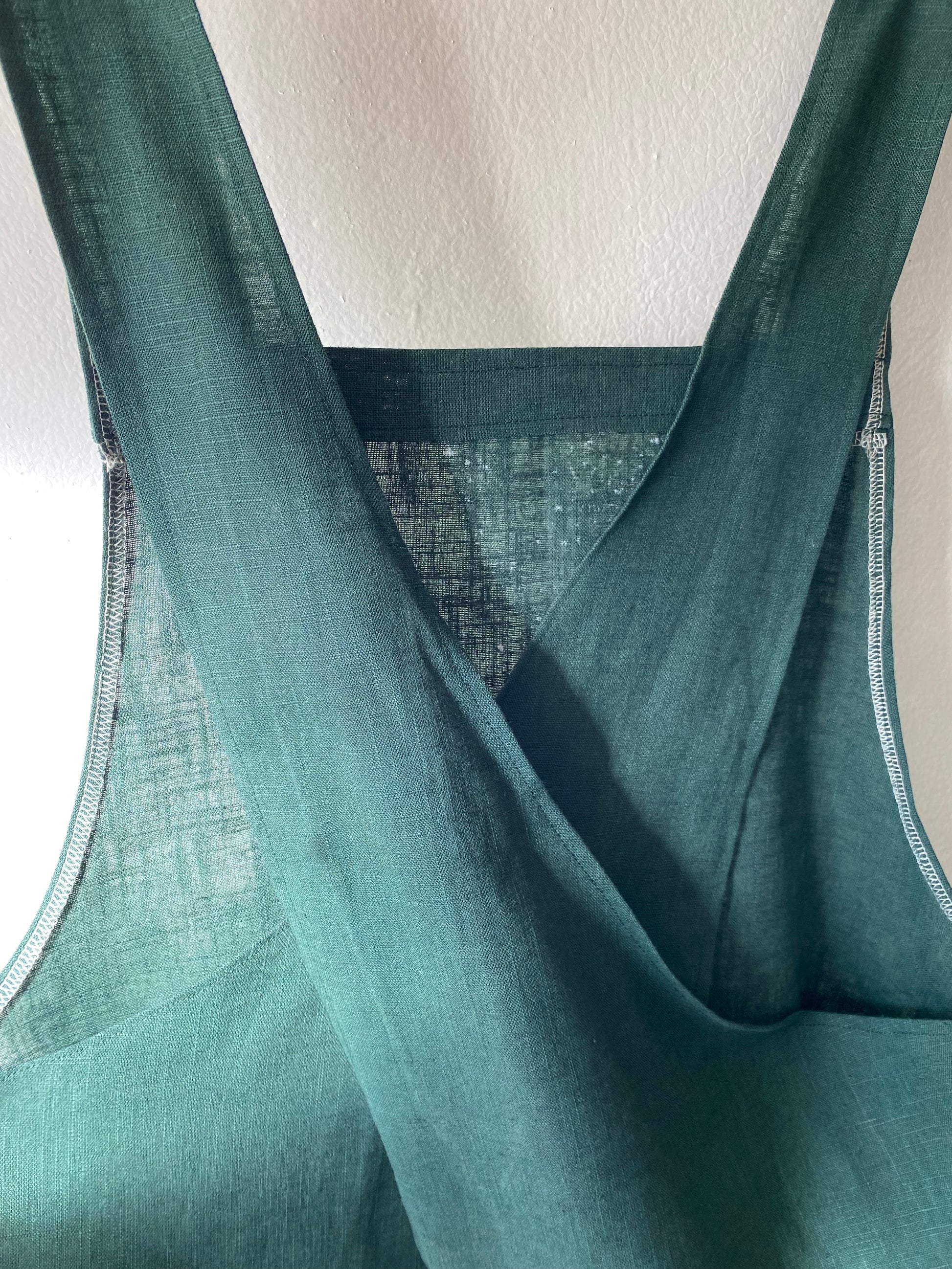The aprons length is approximately 91cm. Our aprons are a one size fits all due to the wrap and cross back straps.